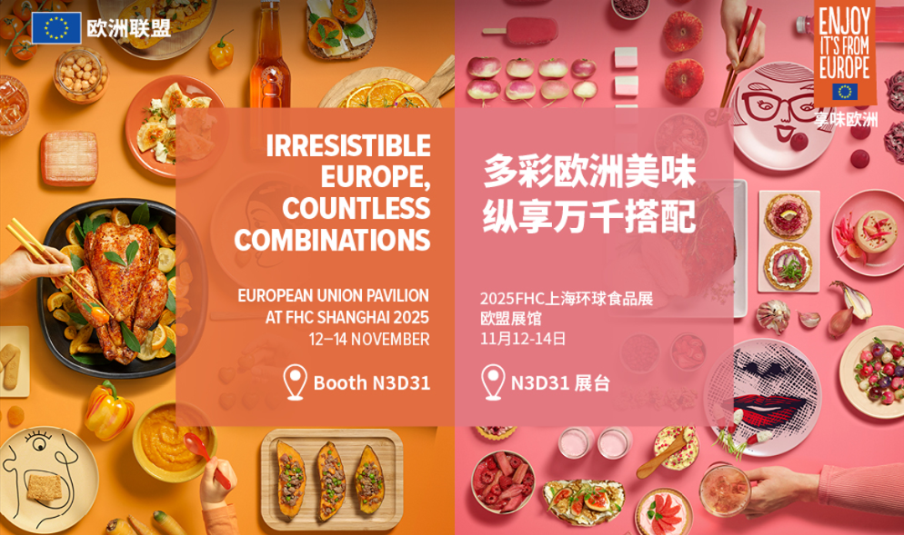 As the Region of Honour for The 28th FHC Shanghai Global Food Trade Show, the European Union will make a grand appearance in a dedicated pavilion (Booth: N3D31). Under the theme “IRRESISTIBLE EUROPE, COUNTLESS COMBINATIONS,” the EU aims to promote the exceptional quality of premium European food and beverages to the Chinese market.