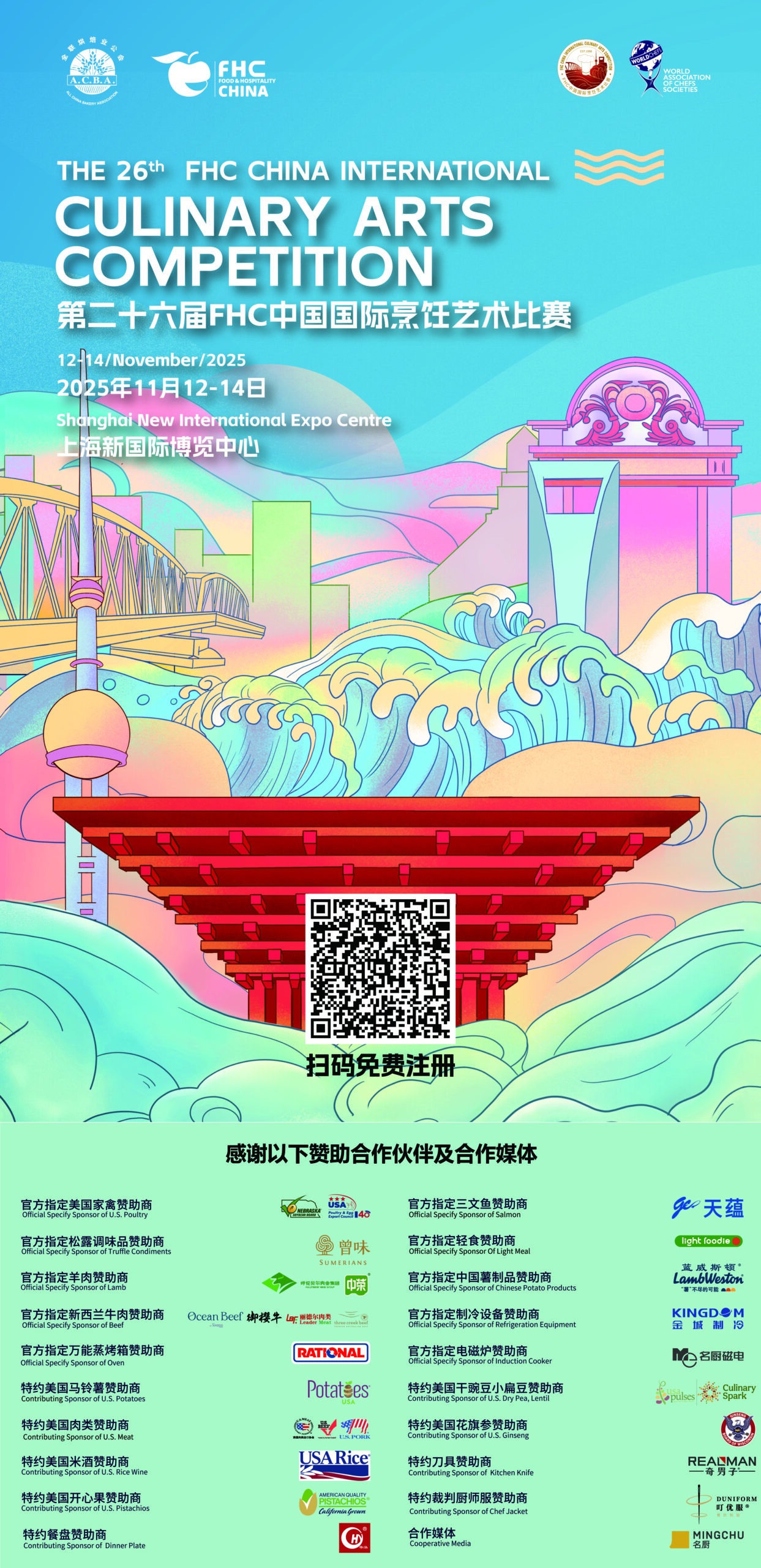 The 26th FHC China International Culinary Arts Competition, jointly organized by the All-China Bakery Association (ACBA) and Shanghai Sinoexpo Informa Markets International Exhibition Co., Ltd., holds the prestigious A-grade international certification from the World Association of Chefs’ Societies (WACS). Since its inaugural edition in 1998, the competition has remained steadfast to its founding mission: to provide a platform for culinary students and professionals passionate about cooking to hone their skills and exchange ideas. It is dedicated to nurturing young culinary talents while advancing the development of Western cuisine in China, creating a harmonious blend of Eastern and Western culinary cultures and fostering collaborative success. Through the dedicated guidance of the competition committee and with widespread recognition from participants and industry stakeholders, the event has evolved from a regional contest into an A-grade international competition. This elevation has established it as a higher-caliber professional culinary platform, underscoring its status as a highly prestigious international culinary competition.