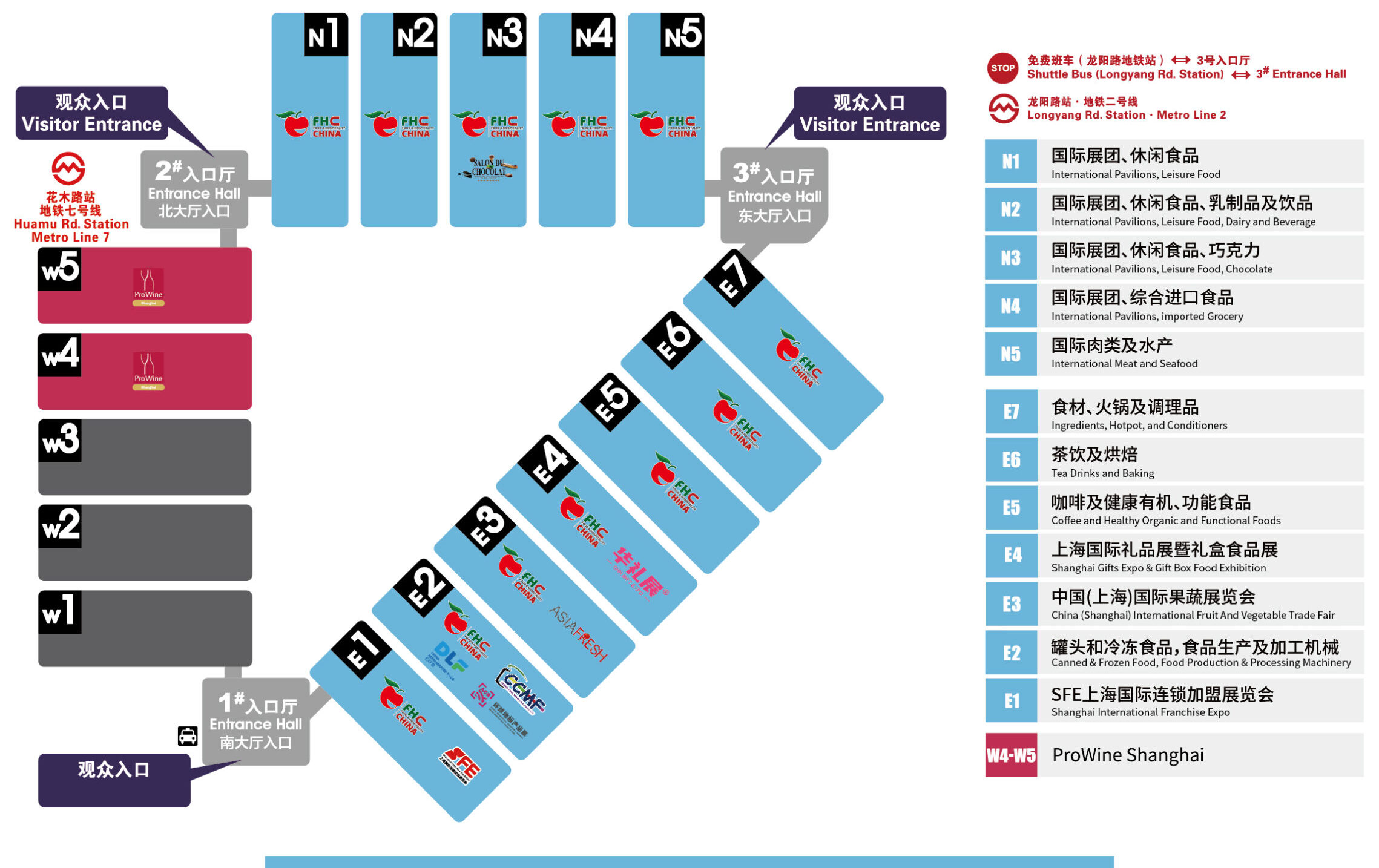 ■ Indoor exhibition hall: Hall N1-N5, Hall E1-E7